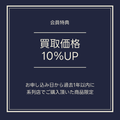 過去1年以内に系列店でご購入いただいた商品の買取金額が10%UP!※ご購入履歴が確認できる場合に限ります。