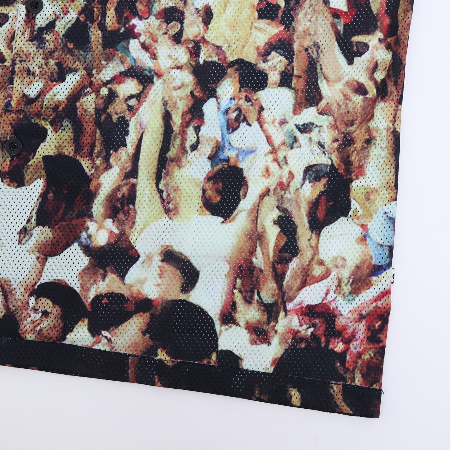 Arte Antwerpのメッシュシャツ。全面に群衆を模したグラフィックがプリントされたメッシュ生地を使用した半袖シャツ。インパクトのあるグラフィックと清涼感のある機能素材が相まった春夏シーズンらしいアイテムです。